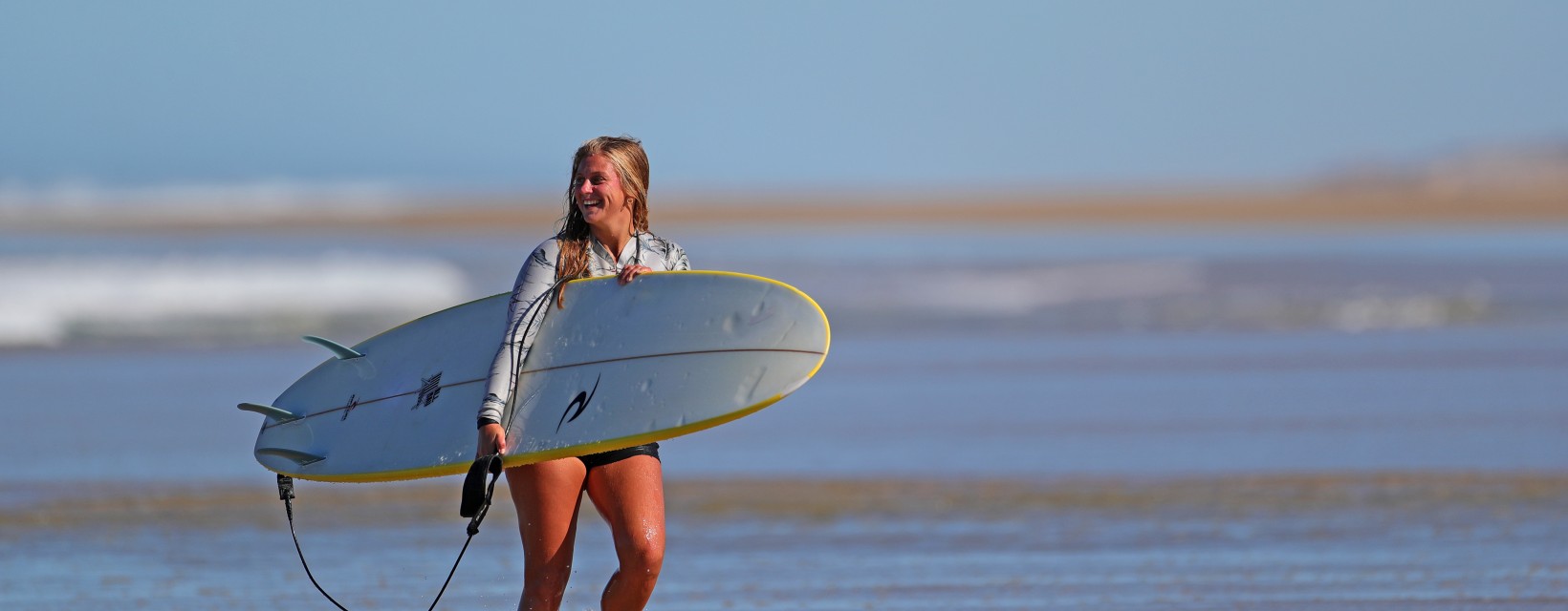 Situé en Gironde, sur la côte Atlantique, le domaine de Bombannes est un endroit préservé, en pleine nature. Les plages, à deux pas derrière un cordon de dune de sable fin, sont facilement accessibles en vélo. Ce sont des spots sauvages et déserts, loin du tourisme de masse, qui offrent la tranquillité que beaucoup de surfeurs expérimentés ou débutants recherchent en été.