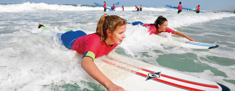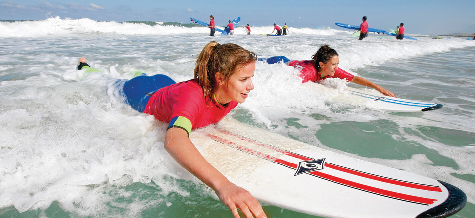 Télécharger la ficheLacanau est à la fois une plage immense sur la côte atlantique, un lac de 2000 ha et une forêt de pins omniprésente à l'ensoleillement réputé. Tout est prévu pour une séjour sportif et revigorant. Un cocktail d'activités terrestres et nautiques si dense qu'il faudra choisir… selon votre forme et vos envies. 5 jours / 4 nuits > 5 séances de surf. Océan à 1,5 kms - trajet effectué en vélo > 3 séances sports nautiques parmi : catamaran, windsurf, paddleLES TOPS DU PRODUIT